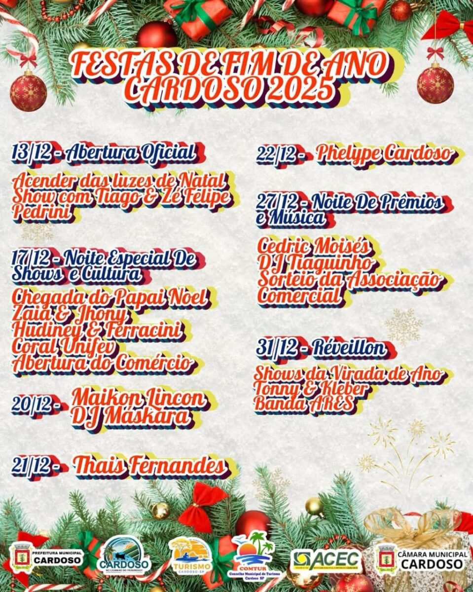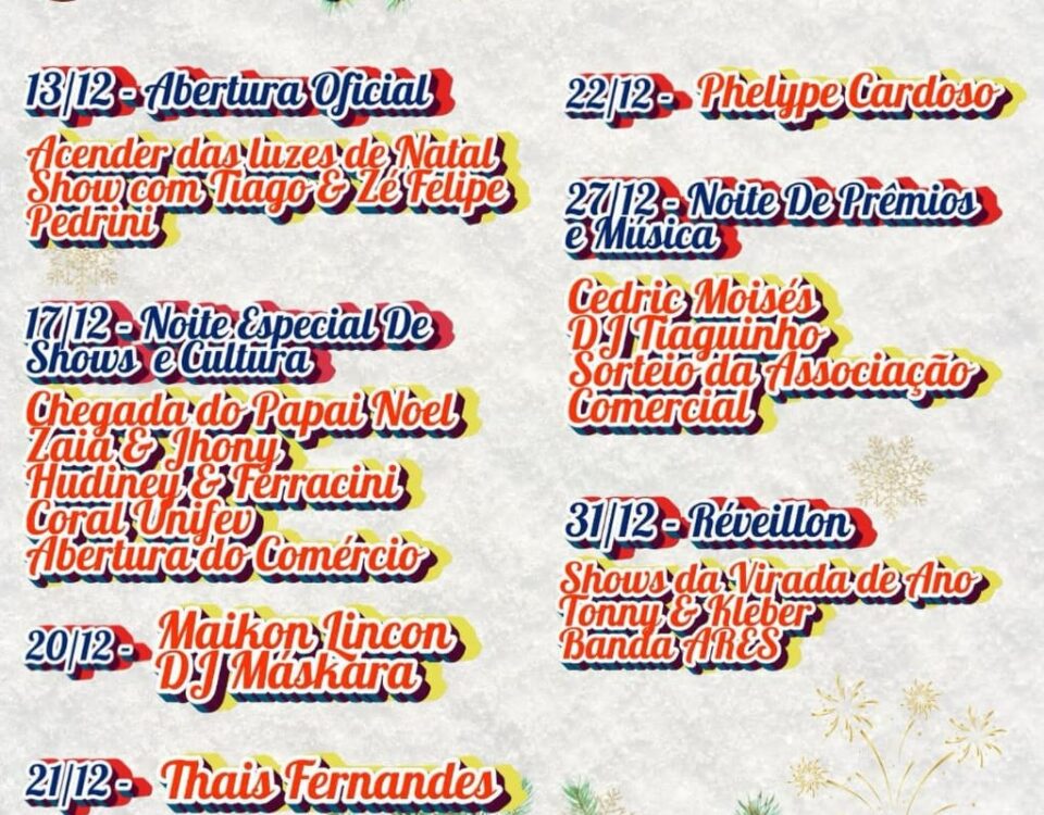 Natal Fest – Cardoso 2025 A magia do Natal vai tomar conta da Praça da Matriz em Cardoso! Prepare-se para dias especiais repletos de música, diversão, […]