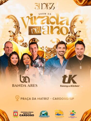 A virada de ano em Cardoso promete ser inesquecível! Prepare-se para uma noite especial na Praça da Matriz, com shows que vão animar toda a cidade.