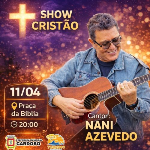 A cidade de Cardoso receberá uma noite especial de fé, louvor e muita emoção. O cantor cristão Nani Azevedo estará se apresentando em um grande show que promete tocar os corações e reunir a comunidade em um momento de adoração.